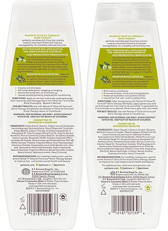 Transform dull, frizzy hair into soft, shiny, and manageable strands with Palmer’s Olive Oil Formula Shine Therapy Shampoo & Conditioner. Infused with extra virgin olive oil, Vitamin E, and Jamaican Black Castor Oil, this powerhouse duo deeply nourishes, smooths, and protects both your hair and scalp.