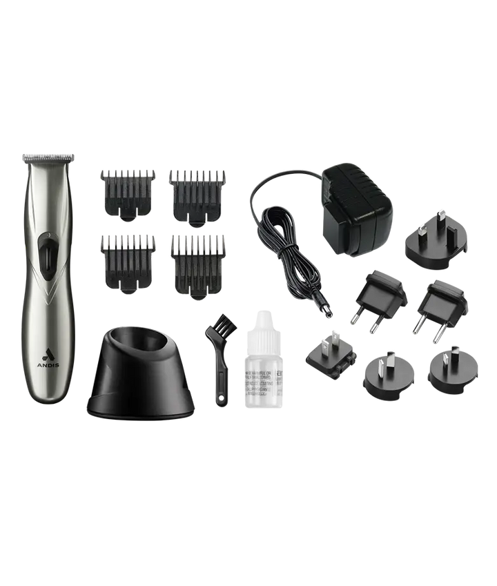 Andis Slimline Pro Li is a lightweight, cordless professional trimmer designed for precision and zero cuts. Powered by a lithium-ion battery, it delivers long-lasting performance with up to 2 hours of continuous use on a single charge. Perfect for barbers, stylists, and personal grooming.